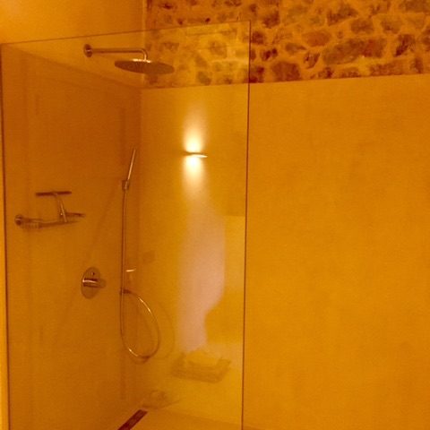 Exclusives Bad mit großer offener Dusche, seperates Schlafzimmer und eigener Terrasse mit Tor